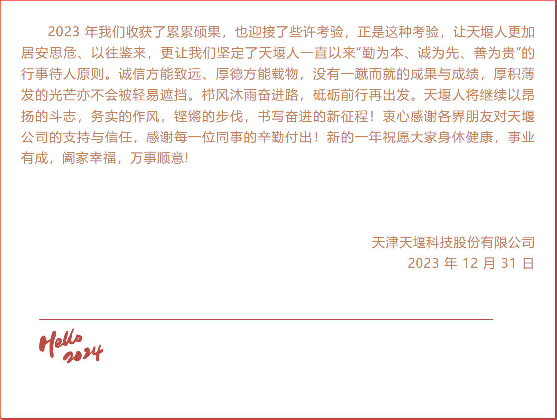 二十二载共奋进 厚德载物谱华章 天堰科技 2024 年新年贺词