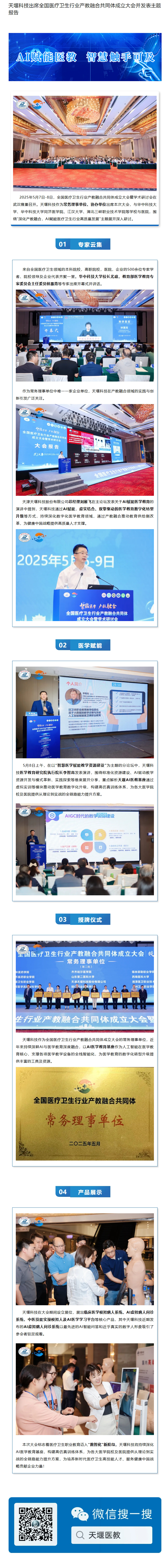 天堰科技出席全国医疗卫生行业产教融合共同体成立大会并发表主题报告